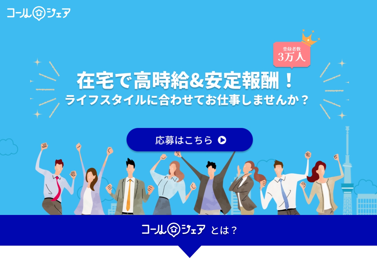 「自宅にいながら安定収入を得たい」「時給制で安心して働きたい」そんな方にとって、コールシェアは非常に有力な選択肢です。