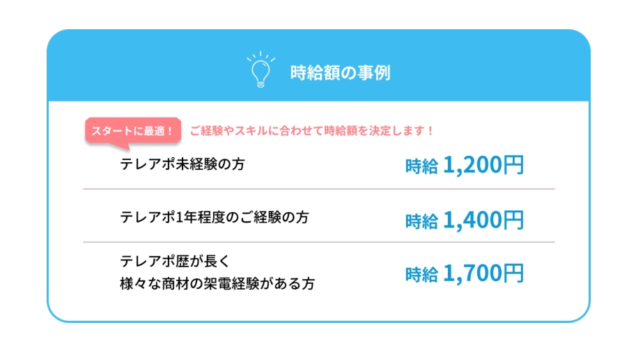 | 営業・接客経験者 | スキルを活かして時給アップが狙える |