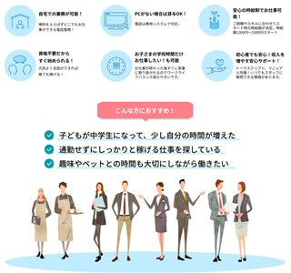 | 子育て中の主婦・主夫 | 完全在宅&柔軟なシフトで家庭と両立しやすい |
